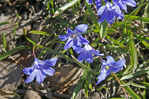 Blue flowers with yellow pollen.