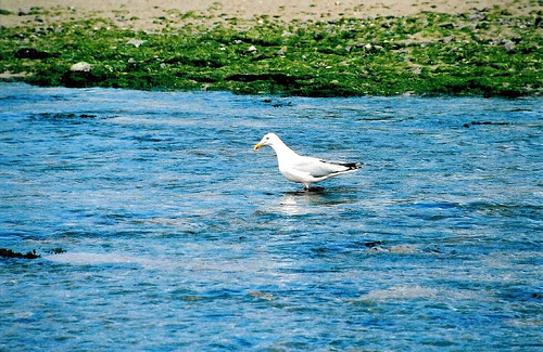 A seagull standing in a river